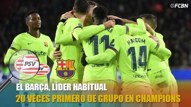 With the triumph in Eindhoven and the first square of the Group B ensured, the FC Barcelona puts course to the eighth of Champions League like the team that more times has happened to said round like first of group: a total of 20 times (12 followed)