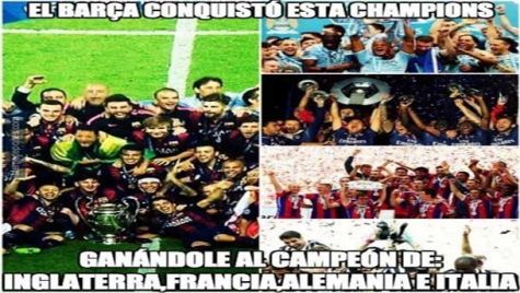 As it could not be of another form, the imagination of the fans of the FC Barcelona invaded the social networks after the triplete achieved by the Barça with a big quantity of "memes" original and fun. In all they remained patent the Barcelona superiority