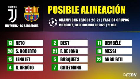 - FC Barcelona: Net, Dest, Lenglet, Araújo, Sergi Roberto, Busquets, Of Jong; Dembélé, Griezmann, Leo Messi; and Ansu Fati.