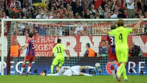 The goals of the party: 1-0 Benatia (minute 7): Kickoff of corner bounced by Alonso and the cabecea Benatia at the end of the network doing useless the pulled of Ter Stegen. 1-1 Neymar (minute 15): Messi puts the balloon to the space for Suárez, that wins him the back to Benatia and yields it so that Neymar mark to empty door. 1-2 Neymar (minute 30): Messi combs of head for Suárez, that raises the head and yields it to the another side for Neymar. The Brazilian goes down the balloon and plants it to the short stick. 2-2 Lewandowski (minute 59): Good manoeuvre of the Pole in front of Mascherano and big definition to the stick. 3-2 Müller (minute 74): Shot from the frontal that cuela hit to the left stick.