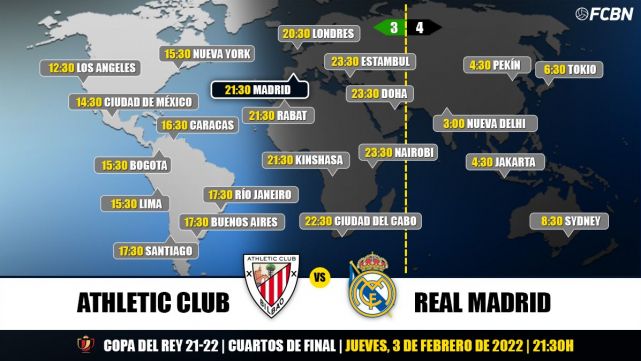 In the United States, these Copa del Rey quarterfinals between Athletic vs. Real Madrid can be seen live from 3:30 p.m. through 'ESPN+. In Canada, by contrast, the meeting will not be broadcast. In the countries of South America, Central America and the Caribbean where the duel is broadcast, the match between Athletic and Madrid can be seen live through the following schedules and television channels: 'Star+', 'DIRECTV Sports', 'ESPN' and , 'Eleven Sports' and 'SKY Sports'.