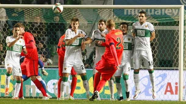 The central French of the FC Barcelona, Jeremy Mathieu, premièred this Thursday like goleador with the FC Barcelona thanks to an excelso goal of fault in the turn of eighth of final in front of the Elche, in a target that served to open the tin against the Valencian group