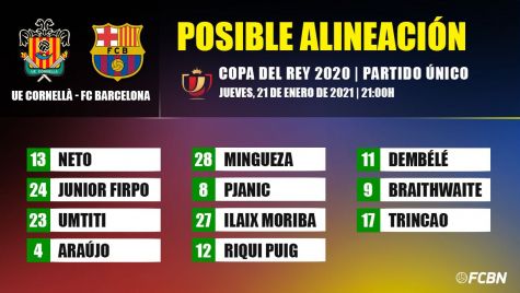 The possible alignments of the UE Cornellà-FC Barcelona of Copa del Rey