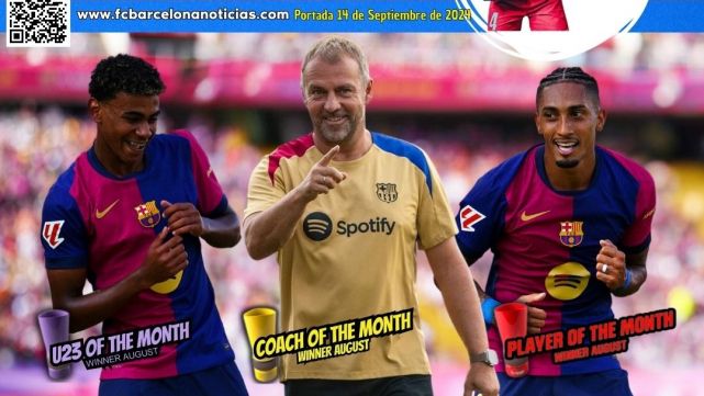 FCBN cover of Saturday 14 September 2024: LaLiga has rewarded Barça's great start by recognising Raphinha, Lamine Yamal and Hansi Flick, the MVPs for the month of August in the competition
