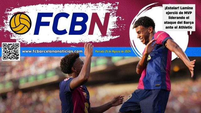 This is today's FCBN cover, Sunday, August 25, 2024: Barça beat Athletic on the second day of LaLiga (2-1). Lamine Yamal, in star form, and Robert Lewandowski scored the goals in the Barça victory