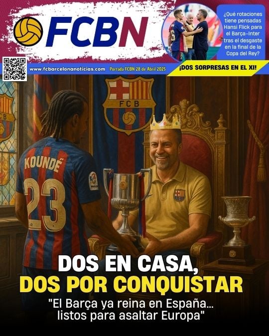 FC BARCELONA NEWS Cover for Monday, April 28, 2025: FC Barcelona has already left its mark in Spain, conquering the Super Cup and the Copa del Rey with authority. An ambitious team, a project that is beginning to reap its rewards under the leadership of Hansi Flick, but that is not satisfied: history demands more.