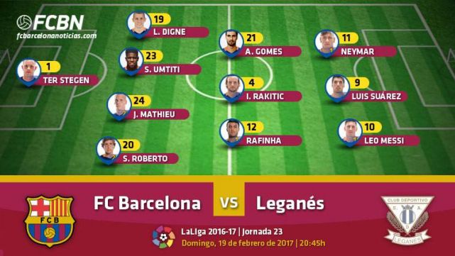 The FC Barcelona will bet by an eleven with the big majority of his indisputable headlines to face up to the Leganés, in the corresponding party to the day 23 of League in the Camp Nou. The aim: goleada to recover the spirit