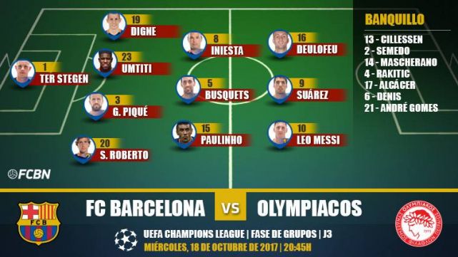 Alignments of the J3 of Champions: Barça-Olympiacos