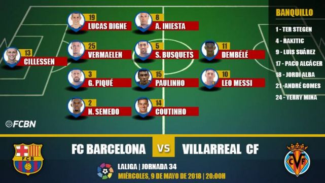 Alignments of the J34 of LaLiga: FC Barcelona-Villarreal