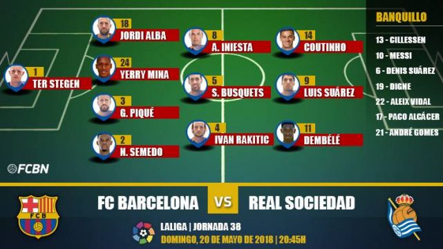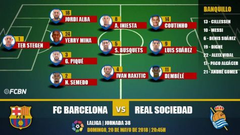 Alignments of the J38 of LaLiga: FC Barcelona-Real Sociedad