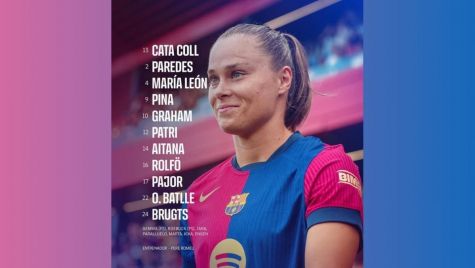 FC Barcelona starting XI: C.Coll, O.Batlle, C.Pina, I.Paredes, Mapi, Rolfö, A.Bonmatí, E.Brugts, P.Guijarro, C.Graham, E.Pajor.