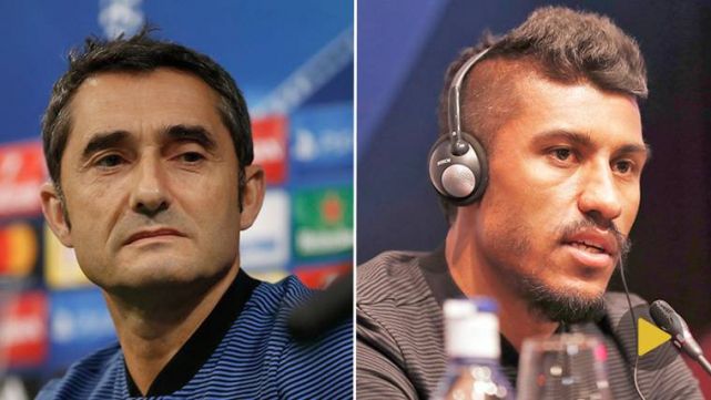The trainer of the FC Barcelona and one of his players, Ernesto Valverde and Paulinho, appear this Tuesday in previous press conference to the third day of the phase of groups of the Champions League, against the Olympiacos in the Camp Nou