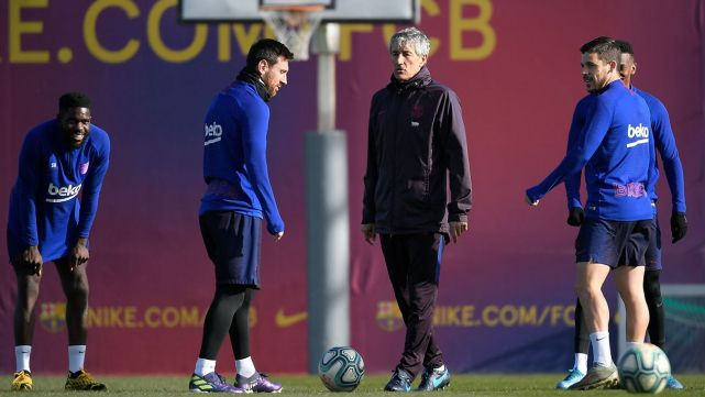 This was the 'crossing' of Setién with Messi, Alba and Piqué in training
