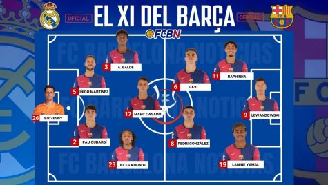 - Starting XI: Szczesny (P); Koundé, Pau Cubarsí, Íñigo Martínez, Balde; Casadó, Gavi, Pedri; Lamine Yamal, Raphinha, Lewandowski
