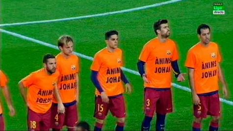 In the T-shirt could read "Ànims Johan", ("Spirit Johan") with the orange colour in clear reference to the country of Cruyff, Holland. The president of the club Josep Maria Bartomeu already had announced that the entity would make an act of public support to the man that revolutionised the Spanish football and to the own FC Barcelona after it diagnosed him cancer of lung.