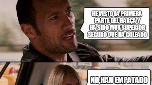 Without more we leave you with the best "memes" of the meeting that of good sure will serve to ones to happen the bad drink of the tie and to others to celebrate the point achieved in front of the best team of the world. In spite of this, the FC Barcelona will go back to sleep another night more as leader.