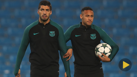 This fun scene produced during the last session of training of the FC Barcelona, previous to the party against the Manchester City of this Tuesday in UEFA Champions League. The Brazilian star Was tying quietly the boots supporting the foot on a balloon, while Luis Suárez and Leo Messi chatted to his side animadamente.