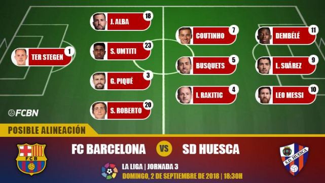 The possible alignments of the FC Barcelona-Huesca (LaLiga J3)