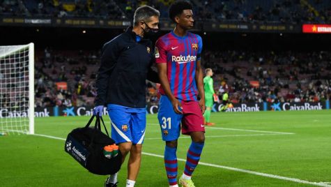 Alejandro Balde has suffered an injury during the match against Real Madrid Castilla. The defender received a tough tackle from Sergio Santos and was barely able to stay on his feet before asking to be replaced.