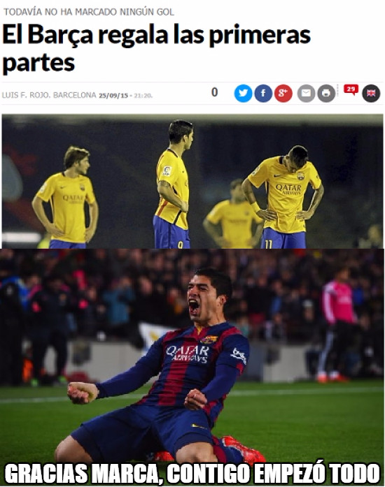 Another party more and another alluvium of 'memes' that has left us the fifth victory in League BBVA 2015-2016 of the FC Barcelona. In this case it has chosen like the best of the party one that seems hit since resume it sucedido in the terrain of game. And it is that although the Barcelona won to the Canarians 2-1, the head of a lot of players and fans were in the hospital where made him the proofs to Leo Messi after his injury.