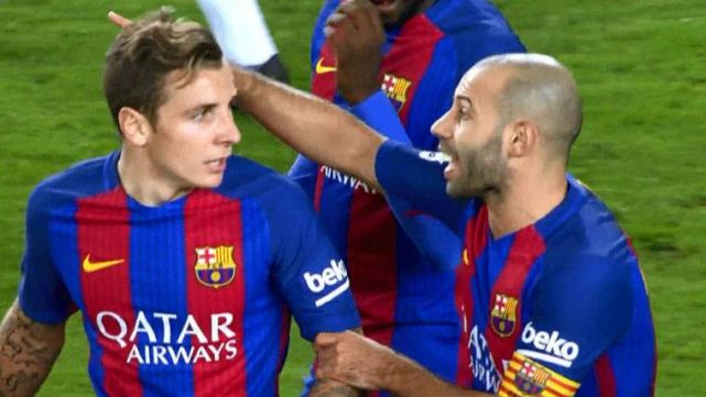 During the celebration of the first goal annotated by the FC Barcelona against Hercules this past Wednesday, in the turn of the dieciseisavos of final of the Glass of the King 2016-17, called especially the attention that, when Lucas Digne just finish to celebrate his first official goal with the Barcelona T-shirt, Javier Mascherano attended quickly to board conversation with him.