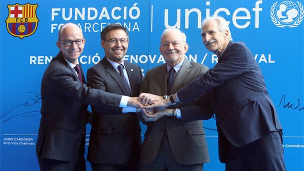 The president of the FC Barcelona, Josep Maria Bartomeu, has staged this Thursday the agreement of prolongation of agreement with UNICEF, the agency of the United Nations for the Infancy, until the year 2020. Already it does 10 years since it produced alliance between the two institutions