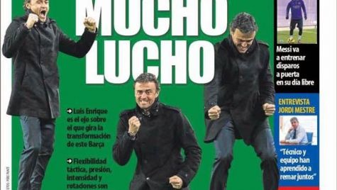 Cover of the periodic Sportive World, Wednesday 18 February 2015. Luis Enrique is the axis on which turns the transformation of this Barça. Tactical flexibility, pressure. Intensity and rotations are his personal stamp. Messi goes to train shots to door in his free day.