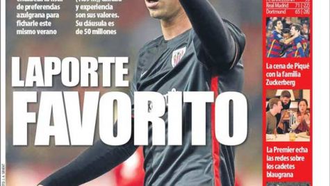 Cover of the periodic Sportive World, Friday 26 February 2016. The one of the Athletic is the central that heads the list of Barcelona preferences for ficharle this same summer. Youth (21 years), height (1.89), quality and experience are his values. His clause is of 50 millions.