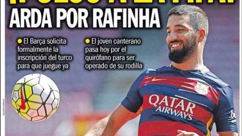 Cover of the newspaper Sport, Tuesday 22 September 2015. The Barça requests formally the registration of the Turkish so that it play already. The youngster canterano raisin today by the operating theatre to be operated of his knee. Neymar Asks to Coutinho.