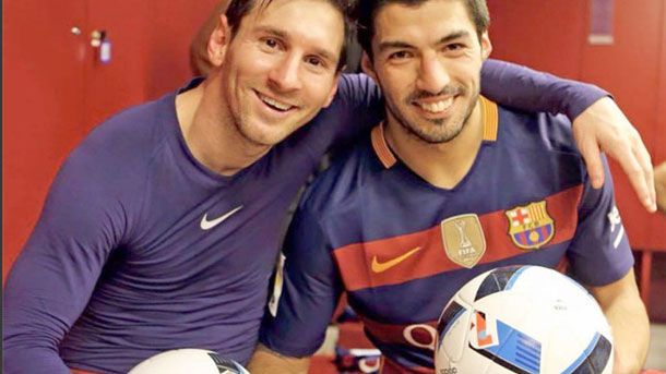 The Argentinian star of the FC Barcelona and author of a "hat-trick" this Wednesday against Valencia, Leo Messi, hanged in the social networks a photography beside Luis Suárez in which both appeared with the balloons of the party after having annotated a "póker" and a "hat-trick"