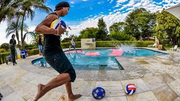 Ronaldinho "Shoots" to his friends in a swimming pool
