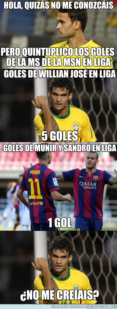 Finally, and although they did not contest any minute of the party, Munir the Haddadi and Sandro Ramírez also received by part of the fans. And it is that, as it affirms in the last "meme", the forward of The Palms William José quinduplica to the two canteranos Barcelona.