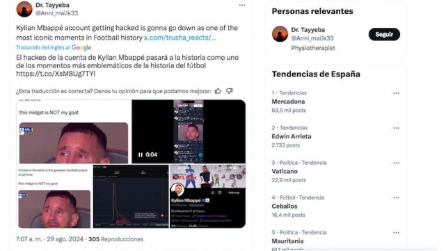 The Real Madrid footballer has been the victim of hackers who have accessed his official account on the social network Twitter (X) and have made offensive and controversial posts impersonating the player. As expected, the “Mbappé hack” has gone viral and memes and all kinds of comments and reactions continue to appear on the main social networks.