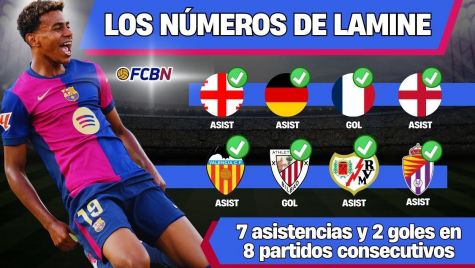 Lamine Yamal continues to break records: he has scored or assisted in 8 consecutive games