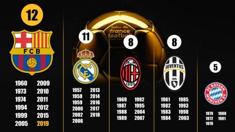 The FC Barcelona dominates the ránking of clubs with more Golden Balls