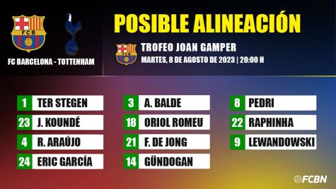 The FC Barcelona prepares to give beginning to the season 2023-2024, but in front of has the dispute of the 58ª edition of Joan Gamper against the Tottenham in the Olympic Stadium Lluís Companys, from the 20:00 hours (8:00 PM, CEST). It supposes the reunion of the barcelonismo after the holidays and the last friendly of preparation before a demanding course in which the blaugrana will look for to compete in all the competitions.