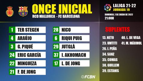 Line-ups of Mallorca-FC Barcelona of LaLiga 2021-22