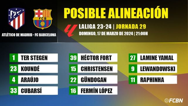 FC Barcelona visits Atlético de Madrid with the need to add three points to avoid 'falling behind' in the race for LaLiga in the final stretch of the season. Xavi Hernández will bet on his best available XI