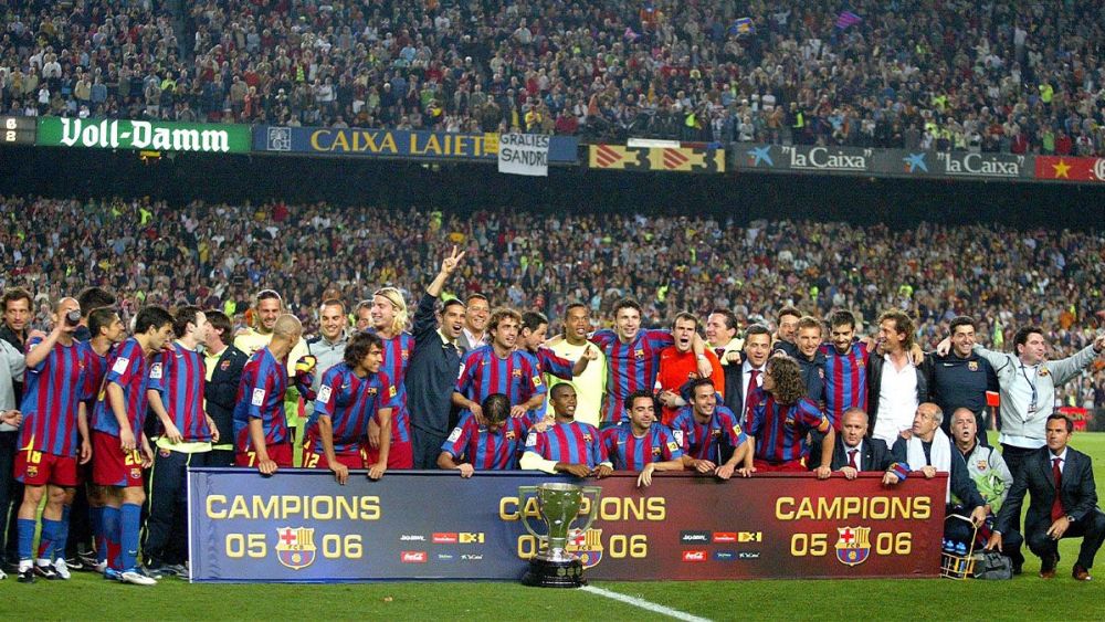 The first 'azulgrana' title in the 21st century came in the 2004/05 season, Frank Rijkaard's second on the 'culé' bench. The signings of Ronaldinho, Deco, Giuly, Eto'o and Larsson changed the face of a team that had gone five years without titles and ended up doing the double in the League (2005 and 2006), in addition to winning their second Champions League in Paris also in 2006.