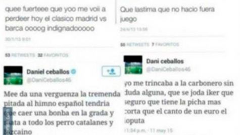 But that was not the only desliz of the canterano Andalusian, but it also had words desacertadas to Sara Carbonero and Iker Boxes, the Masia of the FC Barcelona, Cesc Fàbregas and even to the fans of FC Barcelona and Athletic Club after the pitada to the hymn in the final of the Glass of Rey. "It piss it gives shame the tremenda pitada to the Spanish hymn would have to fall a bomb in the terracing and kills all the Catalan dog and bizcaino", wrote the player in his day.