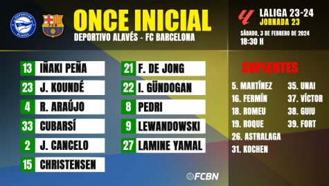 Deportivo Alavés-FC Barcelona: Line-ups for matchday 23 of LaLiga EA Sports 2023/24