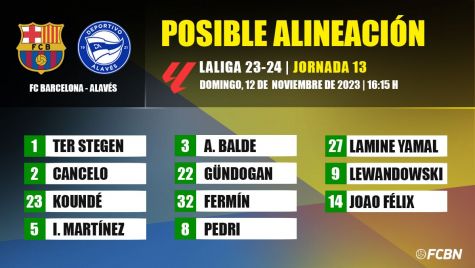 FC Barcelona-Alavés: The possible lineups for matchday 13 of LaLiga