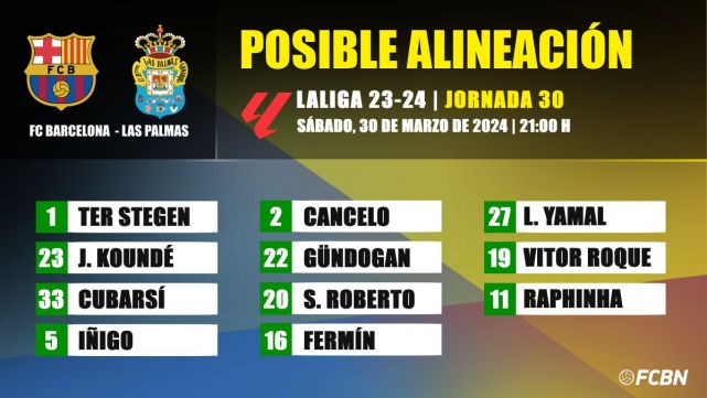 - XI of the FC Barcelona: Ter Stegen; Koundé, Cubarsí, Iñigo, Cancel; Gündogan, Sergi Roberto, Fermín; Lamine Yamal, Vitor Roque and Raphinha.