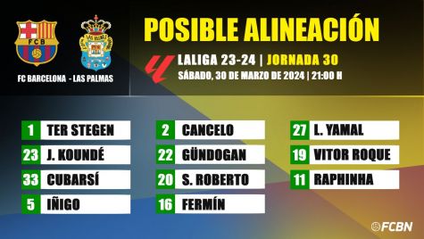 FC Barcelona-Las Palmas: The possible lineups for matchday 30 of LaLiga EA SPORTS