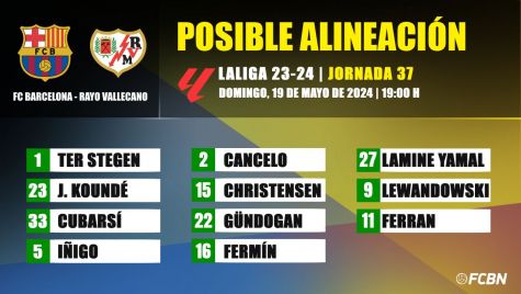 FC Barcelona-Rayo Vallecano: The possible lineups for matchday 37 of LaLiga EA SPORTS