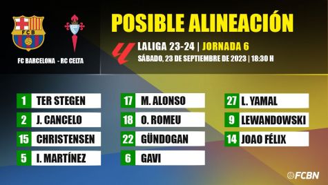 FC Barcelona-RC Celta: The possible lineups for matchday 6 of LaLiga