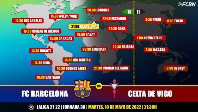 FC Barcelona and Celta de Vigo face each other this Tuesday, May 10, at 9:30 p.m. at the Camp Nou. The match corresponds to the thirty-sixth round of LaLiga Santander 2021-2022 and pits Xavi Hernández's Barça against Celta trained by Eduardo Coudet. Next, we review the schedules and where to watch this soccer game on TV.