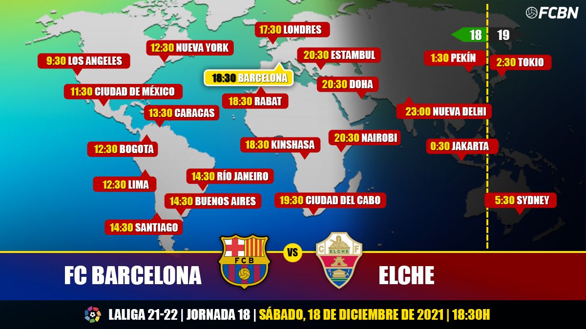 FC Barcelona and Elche confront this Saturday 18 December, to the 18:30 Spanish hour, in the Camp Nou. The meeting corresponds to the day 18 to of LaLiga 2021-2022 and confronts to the Barça of Xavi Hernández against the Elche trained by Francisco Rodríguez. To continuation review the schedules and where see this football match in TV.