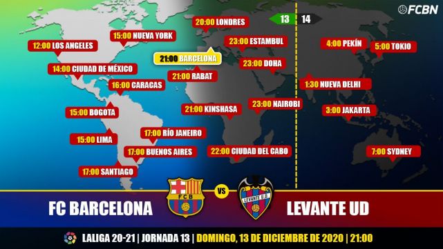 In Spain, the Barça-Levante will be televised in direct the Sunday 13 December to the 21:00 hours by the channels Movistar LaLiga, Movistar LaLiga 1, Movistar LaLiga UHD and LaLiga TV Bar, through the operators Movistar and Orange, that will offer the match in Internet and with access from your mobile, tablet, computer or Smart TV.