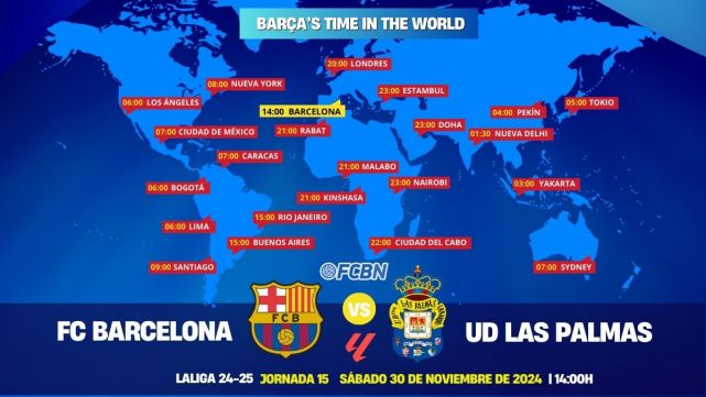 In addition, various international TV channels offer to watch FC Barcelona vs UD Las Palmas live on matchday 15 of LaLiga through their platforms. These are the schedules and TV channels that broadcast the match live and online in all countries of America and Europe.